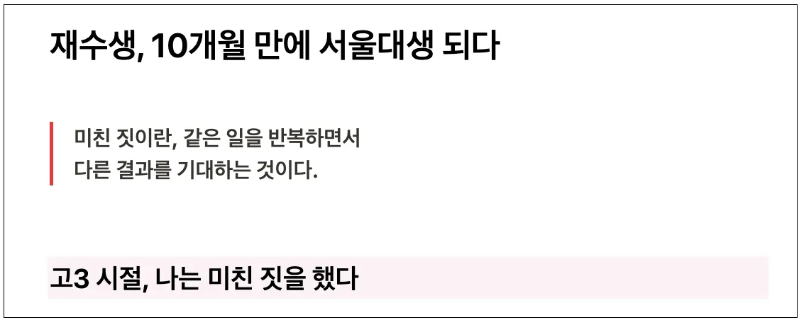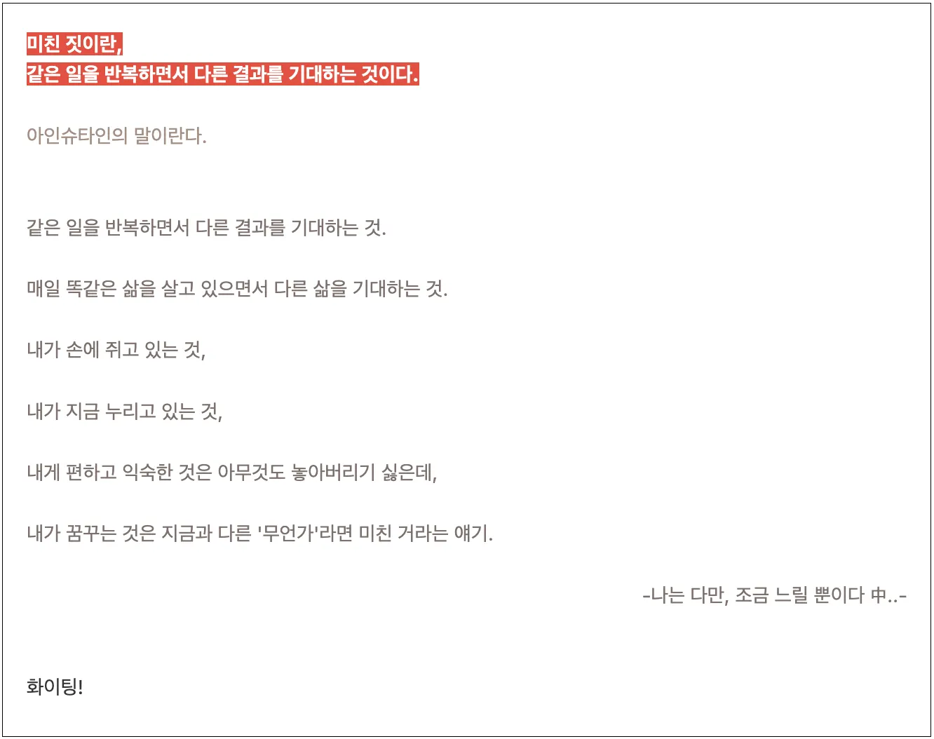 저는 이에 대한 답이 “지속성”이라고 결론지었습니다. 제가 이 글을 쓴 이후로도 꾸준히, 그리고 지속적으로 진심을 담아 글을 써왔기에 이러한 우연이 발생한 것이라 믿습니다. 만약 지속성이 없었다면 이러한 우연이 발생할 확률 또한 전혀 없었겠죠.
