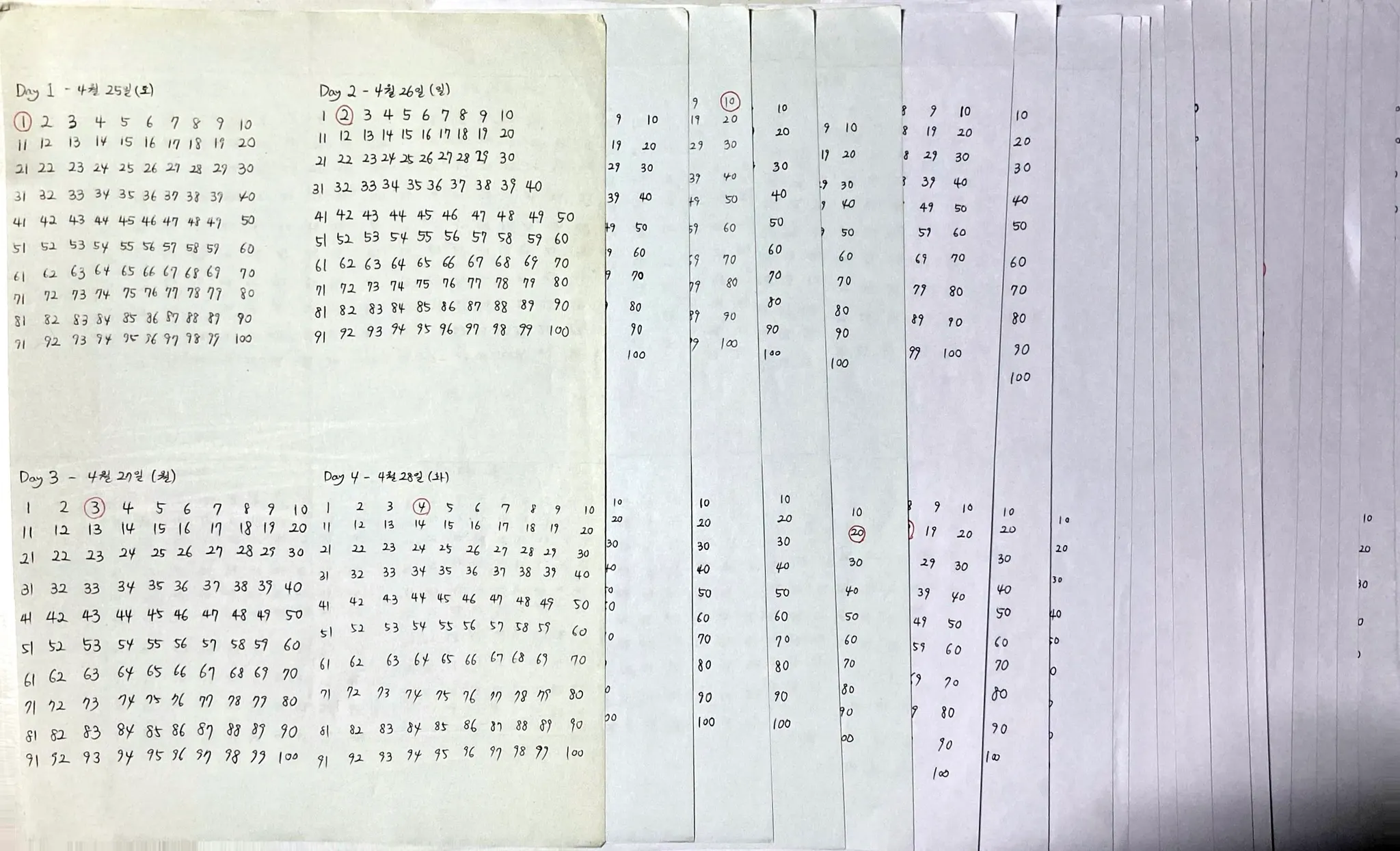 그렇게 매일 밤 1부터 100까지 썼습니다.
