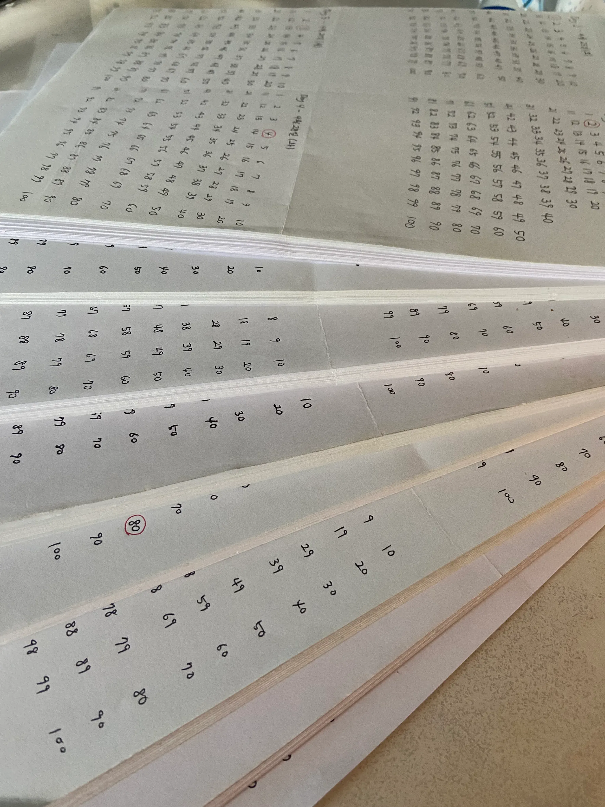 이게 도대체 무슨 말인가 싶은 학생들이 많을 텐데 말 그대로입니다. 종이에 1부터 100까지 쭉 썼습니다. 3분 남짓 걸립니다.