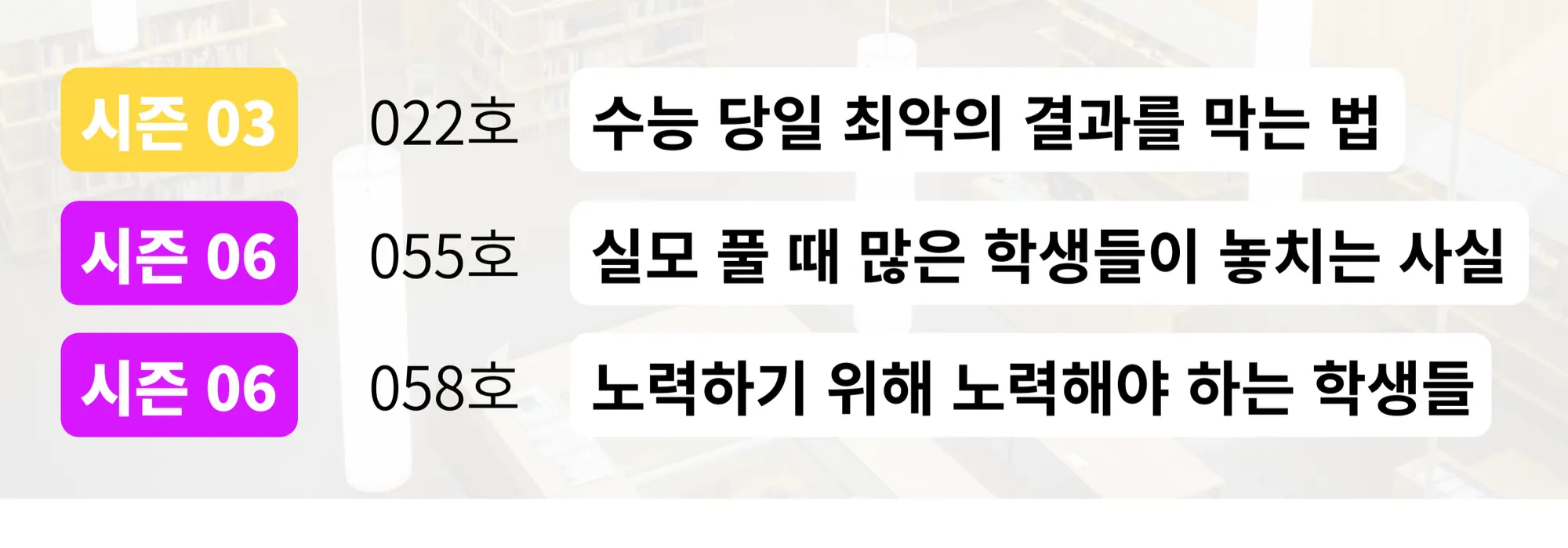 불안함을 느끼는 학생들이 있나요? 그렇다면 그 불안함을 느끼고 있는 이유는 무엇인가요? 여러 이유가 있겠지만 결국, 지금 내가 하고 있는 이 노력이 의미 없는 일이 되어버리진 않을까.. 하는 생각이 문득문득 여러분의 뇌리 속을 파고들기 때문이 아닐까요?
