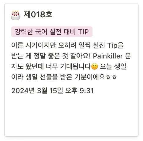 생일 축하드립니다ㅎㅎ 앞으로도 선물 같이 찾아갈 수 있도록 할게요
