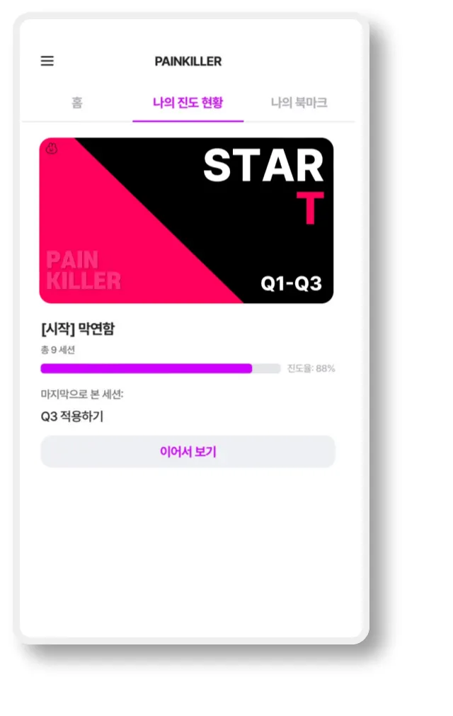 위 사진은 개편된 이후에 여러분이 보게 될 화면입니다. 개편이 완료되면 멘탈레터를 통해 안내를 드리겠습니다. 개편 완료 안내가 나가고 난 시점부터는 PAINKILLER와 멘탈레터는 별개로 운영됩니다. 기대해 주시고 응원해 주세요.