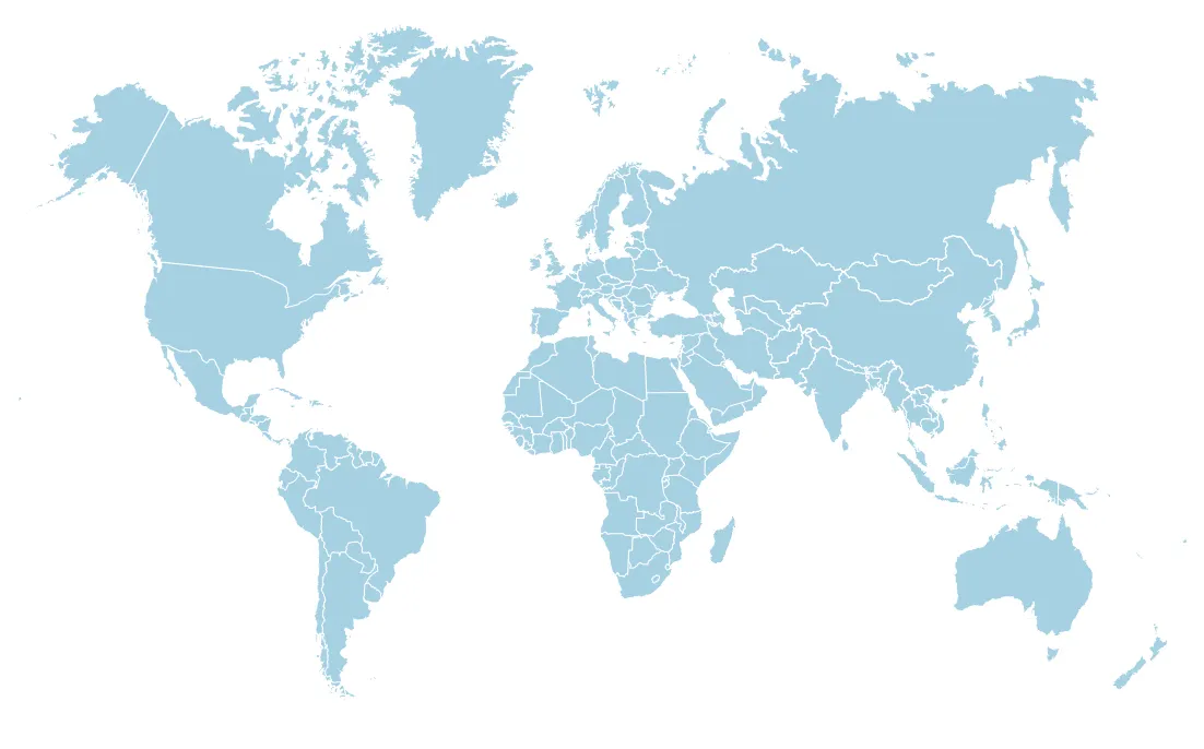 아래 지도에서 진하게 표시된 부분이 각 나라의 실제 면적을 나타낸 것입니다.