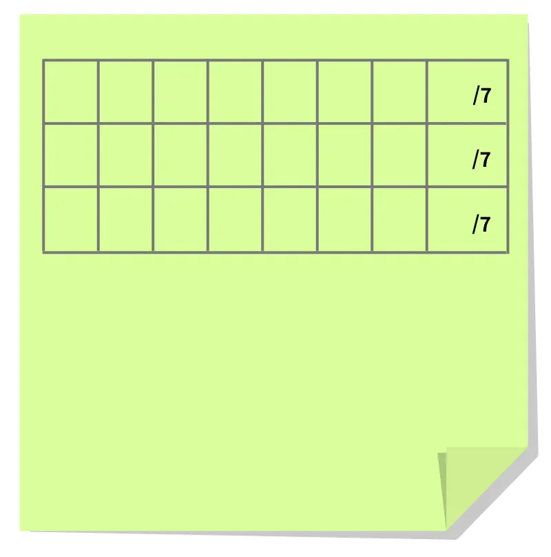 간단합니다. 포스트잇 한 장에 이런 표를 그려서 책상에 붙여주세요. 그러면 준비는 끝입니다.