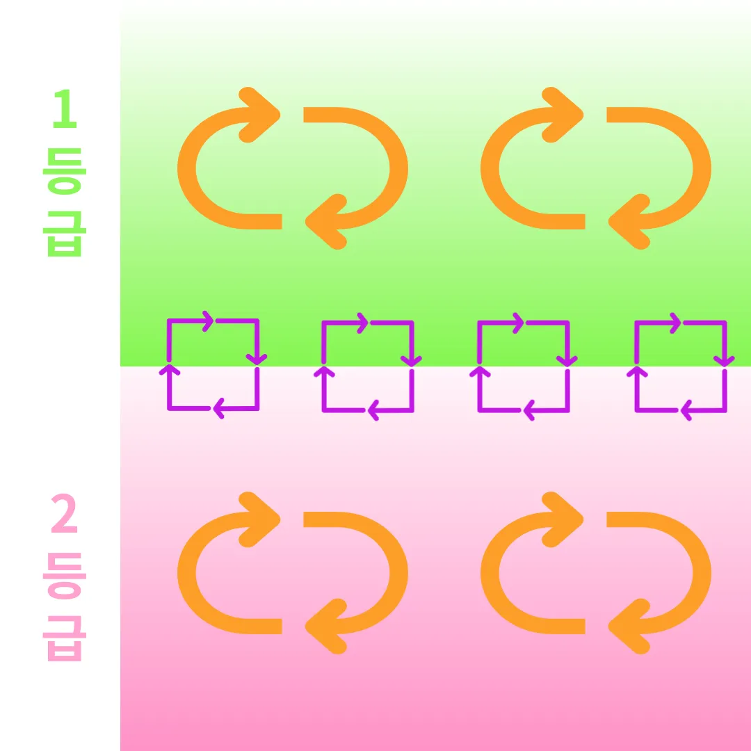 1등급과 2등급 사이에 교환이 일어날 확률이 100%이므로, 여러분은 여러분과 같은 성적대에 있는 2등급들과의 경쟁에서 이긴 집단에 속한다면, 여러분은 자연스럽게 1등급으로 올라가게 됩니다. 누군가 2등급에서 1등급이 되고 & 누군가 1등급에서 2등급이 된다면, 그 누군가들은 1등급과 2등급의 경계에 있는 학생들일 테니까요.